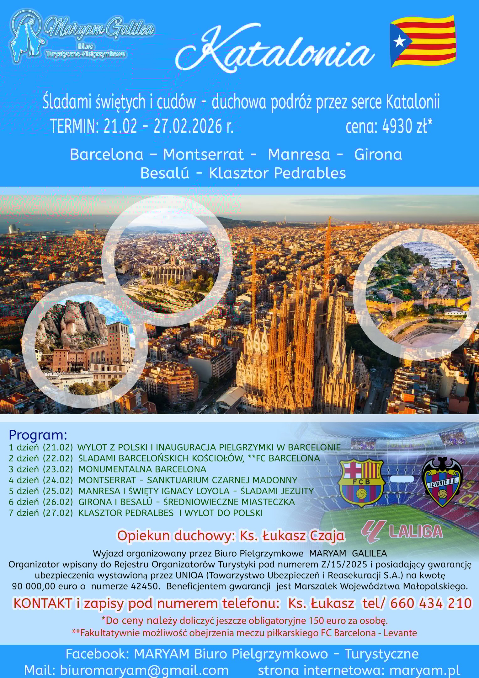 Biuro Pielgrzymkowo — Turystyczne MARYAM GALILEA jest wpisane do Centralnej Ewidencji Organizatorów Turystyki pod numerem 42450.